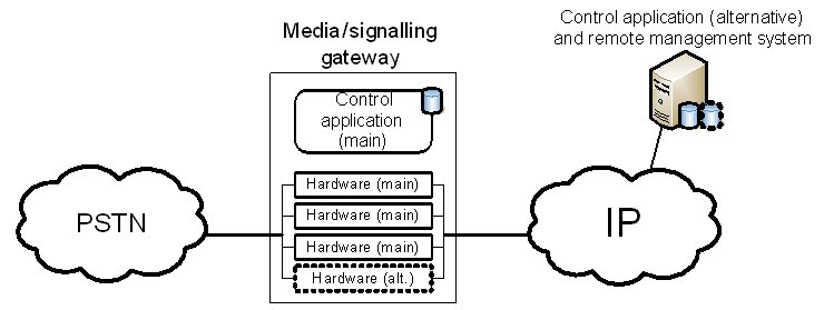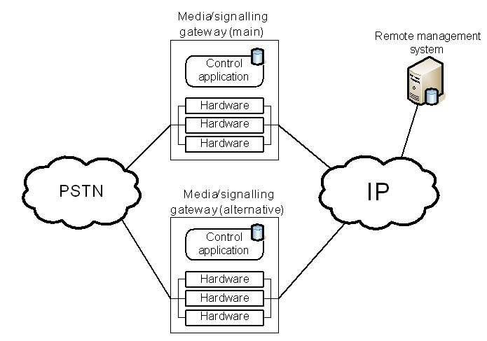 這兩種保護(hù)機(jī)制的區(qū)別可以從下面的例子進(jìn)一步闡述。該事例是一種企業(yè)IP-PSTN網(wǎng)關(guān)應(yīng)用。一般情況下,企業(yè)級(jí)的網(wǎng)關(guān)并不采用軟交換架構(gòu),所以媒體和信令網(wǎng)關(guān)功能在同一設(shè)備內(nèi)實(shí)現(xiàn)。這類(lèi)網(wǎng)關(guān)是一個(gè)獨(dú)立的機(jī)架,內(nèi)裝能實(shí)現(xiàn)媒體和信令處理的硬件板卡和控制類(lèi)應(yīng)用程序。此設(shè)備可以本地管理,也可以采用遠(yuǎn)程管理,如采用標(biāo)準(zhǔn)Web服務(wù)器。