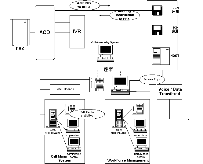 以微機網(wǎng)絡(luò)為基礎(chǔ)平臺的呼叫處理系統(tǒng)的主要技術(shù)組成如下: