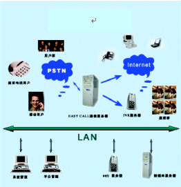 EASY CALL是基于整合式呼叫中心平臺的客戶服務中心系統(tǒng),系統(tǒng)可分為座席、IVR、WEB服務和業(yè)務幾部分。該系統(tǒng)支持數字中繼和模擬中繼,提供普通模擬座席和IP座席,支持異地遠端座席,提供了實用的班長監(jiān)聽、插話、會議等功能。