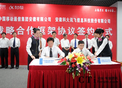 CTI論壇(ctiforum)7月14日消息(記者 張潔):7月11日下午,安徽科大訊飛信息科技股份有限公司與中國(guó)移動(dòng)通信集團(tuán)安徽有限公司在合肥簽署戰(zhàn)略合作框架協(xié)議。根據(jù)協(xié)議,科大訊飛和安徽移動(dòng)將在技術(shù)和業(yè)務(wù)創(chuàng)新等方面開(kāi)展深層次合作。