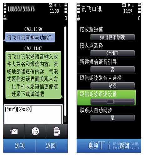 CTI論壇(ctiforum)8月2日消息(記者 張潔):不論是開車還是玩游戲,總是難以騰出手來操控手機(jī),你是否想過如果可以通過耳朵就能聽到短信內(nèi)容,然后說說話就能回復(fù)短信?近日,科大訊飛與騰訊應(yīng)用中心聯(lián)合首發(fā)了訊飛口訊(Symbian)新版v1.0.1100,該產(chǎn)品支持語音發(fā)送短信及新短信自動(dòng)語音朗讀,大大增添了Symbian手機(jī)的實(shí)用性和趣味性,滿足了廣大用戶解放手指、隨時(shí)隨地發(fā)短信的需求。