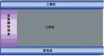 軟電話提供標(biāo)準(zhǔn)的呼叫控制功能,如座席的登錄、注銷等。業(yè)務(wù)模塊信息根據(jù)該座席的技能設(shè)置顯示該座席能夠使用的座席業(yè)務(wù)模塊,工作區(qū)是座席使用業(yè)務(wù)模塊的區(qū)域,業(yè)務(wù)模塊的調(diào)入可以是系統(tǒng)根據(jù)自動(dòng)服務(wù)傳遞的參數(shù)自動(dòng)彈出,也可以是座席人員手工選擇相應(yīng)的業(yè)務(wù)操作。同時(shí),業(yè)務(wù)模塊通過標(biāo)準(zhǔn)的接口和軟電話模塊進(jìn)行通信,取得或者設(shè)置系統(tǒng)的呼叫參數(shù)或操作,包括提取系統(tǒng)主被叫號(hào)碼、用戶按鍵等。通過工具欄提供系統(tǒng)的菜單、快捷鍵、快捷按鈕的使用。通過這種方式,系統(tǒng)可以隨時(shí)增加、修改座席的業(yè)務(wù)模塊,而無須修改整個(gè)座席端,有利于系統(tǒng)業(yè)務(wù)的分步實(shí)施,大大縮短了系統(tǒng)的整個(gè)建設(shè)周期。