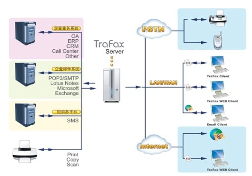 TraFax Server提供功能全面的應(yīng)用開發(fā)接口,可以幫助用戶實現(xiàn)與現(xiàn)有ERP、OA、CRM、Call Center等業(yè)務(wù)系統(tǒng)的無縫集成。TraFax