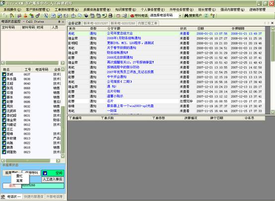 在個(gè)人事務(wù)管理中,坐席人員方便的設(shè)定工作計(jì)劃安排,查詢呼叫記錄(呼入、呼出、呼入失。,收發(fā)個(gè)人Email、短信息、個(gè)人公文以及進(jìn)行公文流轉(zhuǎn)等。