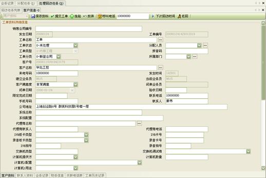 3) 工作流閉環(huán)、客戶通話歷史,客戶聯(lián)系歷史,工單流轉(zhuǎn):工作流系統(tǒng)是通過工單實(shí)現(xiàn)各工作流環(huán)節(jié)的聯(lián)系以及工作流的定義管理,工作流狀態(tài)查詢、更改的。操作員可根據(jù)用戶的不同業(yè)務(wù)請求,建立相應(yīng)的工單記錄,并對該事后處理過程進(jìn)行跟蹤;也可對要處理的事務(wù)形成工單轉(zhuǎn)給相應(yīng)的操作員,并跟蹤該工單的處理過程;可定期提示操作員處理要過期的工單,以提高服務(wù)質(zhì)量;每次處理過程都會(huì)有詳細(xì)的記錄,以便統(tǒng)計(jì)查詢 。如圖8、9、10:
