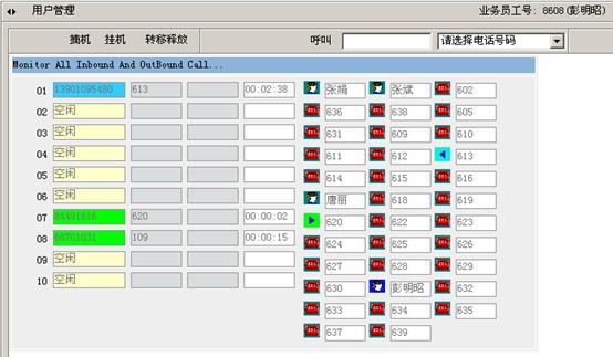 1)系統(tǒng)與CTI服務(wù)器配合,輕松實(shí)現(xiàn)諸如:實(shí)時(shí)監(jiān)控系統(tǒng)的呼叫隊(duì)列、登陸坐席的狀態(tài);并且通過屏幕控制電話的接答、掛機(jī)、轉(zhuǎn)接,以及建立會(huì)議等操作。如圖2: