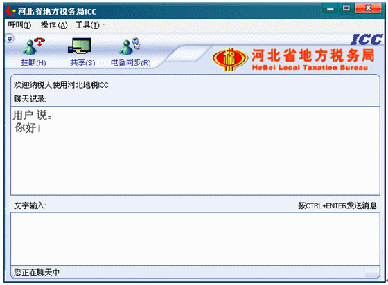 輸入完畢后,點(diǎn)擊OK按鈕,這時(shí)納稅人的ICC呼叫已經(jīng)轉(zhuǎn)到正在和納稅人通話的座席了。接下來的使用遵循7~10的使用規(guī)則。