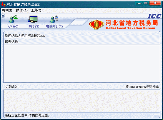 如要掛斷后重新呼叫,請稍等片刻再重新呼叫。如果過早重新點(diǎn)擊共享按鈕,ICC界面左下角狀態(tài)欄文字提示“系統(tǒng)正在處理中,請稍后再點(diǎn)擊”?吹酱颂崾,請稍候再點(diǎn)擊呼叫按鈕。如下圖所示: