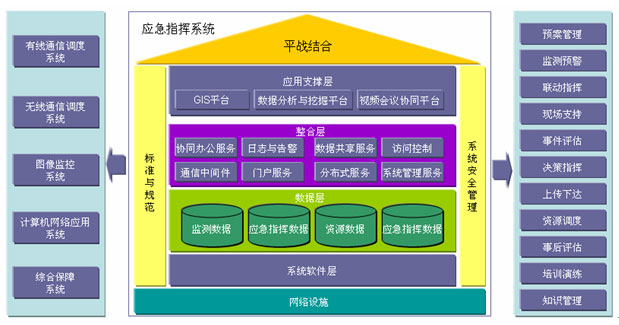 應(yīng)急基礎(chǔ)平臺是基于先進(jìn)信息技術(shù)、網(wǎng)絡(luò)技術(shù)、GIS技術(shù)、通信技術(shù)和應(yīng)急信息資源基礎(chǔ)上的,充分利用現(xiàn)有資源,依托政府系統(tǒng)電子政務(wù)建設(shè),建立統(tǒng)一應(yīng)急指揮網(wǎng)絡(luò)平臺,實(shí)現(xiàn)緊急事件報警的統(tǒng)一接入與交換。