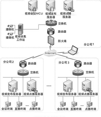 旺城國際各下屬單位都已于1999年建設(shè)好公司內(nèi)部局域網(wǎng),并且都有10M公網(wǎng)出口。旺城國際希望借助視頻會議幫助協(xié)調(diào)解決日前較為突出的營運問題,同時能將會議現(xiàn)場的視頻直播到公網(wǎng)上,供所有單位職工(需有權(quán)限)觀看多方開會的現(xiàn)場,并錄制成MPEG-4格式的文件,放置在公司內(nèi)部局域網(wǎng)上,作為會議記錄存檔,供所有員工點播。具體要求如下: