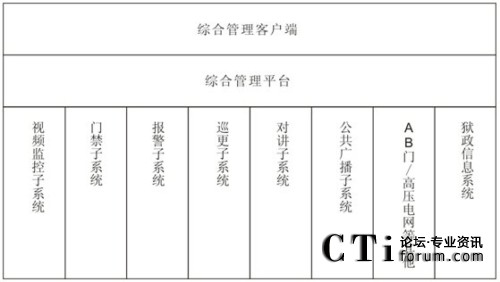 綜合管理首先將實(shí)現(xiàn)各個(gè)安防子系統(tǒng)以及獄政系統(tǒng)的統(tǒng)一管理。在實(shí)現(xiàn)方式上,首先需要一套綜合管理平臺(tái),視頻監(jiān)控、報(bào)警、巡更、門(mén)禁、對(duì)講、公共廣播、AB門(mén)、高壓電網(wǎng)等安防系統(tǒng)以及獄政信息系統(tǒng)均作為子系統(tǒng)通過(guò)相應(yīng)的接口接入綜合管理平臺(tái),然后由綜合管理平臺(tái)進(jìn)行各子系統(tǒng)管理模塊的集成,并提供統(tǒng)一的登錄、管理以及業(yè)務(wù)瀏覽界面。用戶(hù)僅需通過(guò)綜合管理客戶(hù)端登錄綜合管理平臺(tái)即可統(tǒng)一管理和集中查看所有安防子系統(tǒng)以及獄政信息系統(tǒng)的業(yè)務(wù),從而大大提升管理集中性、便捷性以及管理效率。