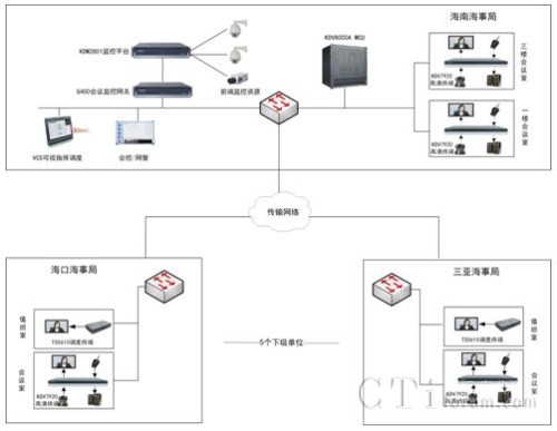 在應急指揮系統(tǒng)的建設方面,科達在海南海事局的搜救中心部署KDV-VCS可視指揮調度系統(tǒng)一套及VS-G400網關一臺,5個下級單位的值班室部署調度終端各一臺,從而實現(xiàn)對會議圖像資源和監(jiān)控圖像資源的綜合調度管理。
