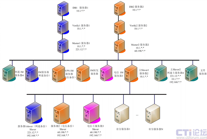 系統(tǒng)平臺(tái)采用集群化部署,實(shí)現(xiàn)跨網(wǎng)絡(luò)分布式,從而在應(yīng)用中實(shí)現(xiàn)南北網(wǎng)通電信的互聯(lián)互通,以及專網(wǎng)用戶的無障礙接入,實(shí)現(xiàn)方式如下圖所示: