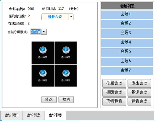 添加一個(gè)會(huì)場到當(dāng)前會(huì)議當(dāng)中。點(diǎn)擊“添加會(huì)場”按鈕,會(huì)出現(xiàn)彈屏,雙擊會(huì)場完成添加。