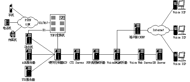 電話聽網(wǎng)業(yè)務(wù)系統(tǒng)支持開放的價值鏈運(yùn)營模式,運(yùn)營商已不再具備將所有的服務(wù)/內(nèi)容都由自己來提供的能力,開放的價值鏈模式要求運(yùn)營商必須通過與ISP(服務(wù)提供商)/ICP(內(nèi)容提供商)的合作來為用戶提供完整的服務(wù)。天資電話聽網(wǎng)業(yè)務(wù)系統(tǒng)實(shí)現(xiàn)了平臺與業(yè)務(wù)的完全分離:平臺通過語音瀏覽器VoiceIE以HTTP協(xié)議從內(nèi)部數(shù)據(jù)庫上下載流程和信息內(nèi)容,內(nèi)部數(shù)據(jù)庫通過流程和數(shù)據(jù)庫接口與外部網(wǎng)絡(luò)連接,實(shí)時獲取信息并存儲,同時,ISP/ICP則利用VoiceXML標(biāo)準(zhǔn)流程語言和IDE集成開發(fā)環(huán)境來開發(fā)流程,完全不需關(guān)心平臺的任何細(xì)節(jié)。廣泛的價值鏈運(yùn)作模式給電話聽網(wǎng)業(yè)務(wù)帶來了強(qiáng)大的動力。