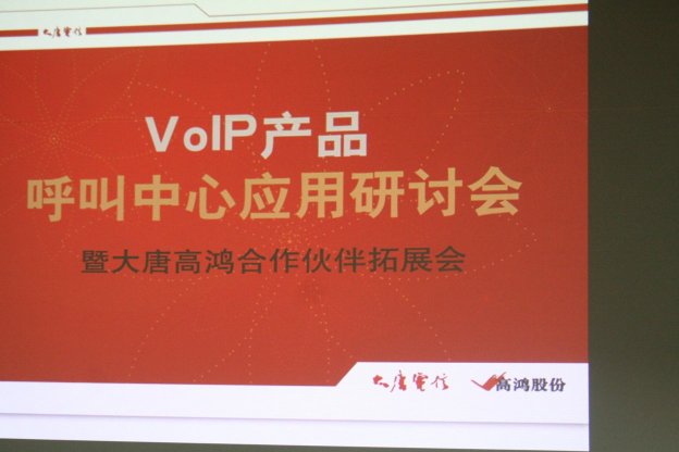 2006年9月8日,由中國VoIP業(yè)界的引領(lǐng)者大唐高鴻數(shù)據(jù)網(wǎng)絡(luò)技術(shù)股份有限公司(股票簡稱:高鴻股份;股票代碼:000851)主辦的大唐高鴻VoIP產(chǎn)品呼叫中心應(yīng)用研討會在北京大唐電信集團主樓隆重舉行,此次會議由CTI論壇協(xié)辦。這是會議是大唐高鴻攜其VoIP產(chǎn)品進(jìn)軍呼叫中心領(lǐng)域的里程碑。參加會議的代表來自虛擬運營商、VoIP公司、呼叫中心公司,企業(yè)行業(yè)客戶以及知名媒體共120余人,大唐高鴻還向會議代表介紹了其VoIP產(chǎn)品與呼叫中心廠商的合作計劃,預(yù)示著大唐高鴻正式向全國展開VoIP產(chǎn)品在呼叫中心行業(yè)中的應(yīng)用的市場攻勢。