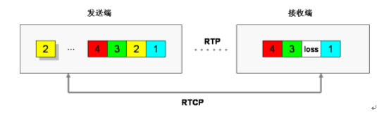 利用實(shí)時(shí)傳輸控制協(xié)議RTCP反饋信息提供丟包重發(fā)功能,當(dāng)接收端檢測到有丟包時(shí),判定對端是否來得及進(jìn)行重發(fā),可以的話通過RTCP控制信道向發(fā)送端請求重發(fā)。