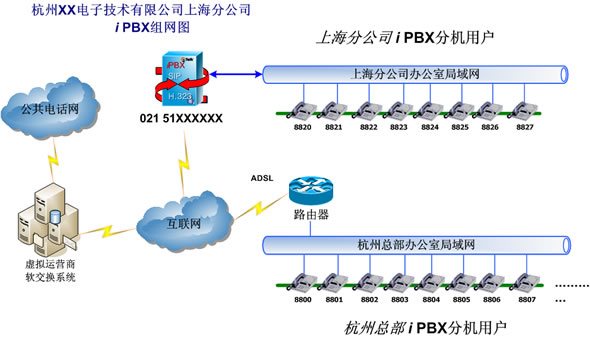 iPBX系統(tǒng)上。實現(xiàn)內部通話免費的同時,也使杭州總部的用戶能夠直接享受優(yōu)惠的VoIP資費。