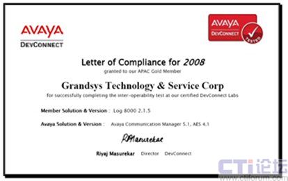 2008年7月 —Grandsys(宏盛高新技術有限公司)宣布其自創(chuàng)品牌[Grandsys LOG8000 錄音與質檢解決方案]正式通過AVAYA DevConnect 的認證。Grandsys正是全球為數(shù)不多的已經(jīng)通過該項認證的AVAYA 合作伙伴之一,包含知名廠家Nice及Verint等,這代表Grandsys的技術已達到國際知名廠家的水平, 國內客戶也因此有機會享受到最優(yōu)質的產品及服務。