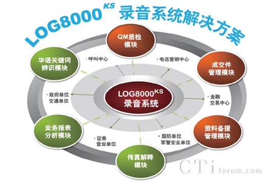 因應(yīng)各種產(chǎn)業(yè)客戶的需求,提供LOG8000KS錄音系統(tǒng)、QM質(zhì)檢模塊、傳真解釋模塊、數(shù)據(jù)儲存?zhèn)湓芾砟K、華語關(guān)鍵詞辨識模塊、業(yè)務(wù)報表分析模塊、成交件管理模塊等,完整解決方案。
