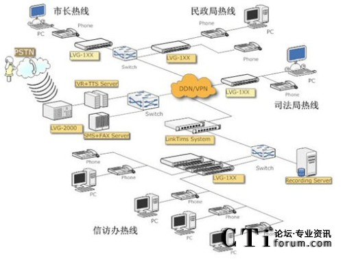 北京藍牙提供的12345政府熱線呼叫中心系統(tǒng)由呼叫中心主控系統(tǒng)、IVR語音導航系統(tǒng)、錄音系統(tǒng)、語音信箱系統(tǒng)、電話會議系統(tǒng)等多個模塊組成,將接入功能、導航功能、自動語音查詢功能、人工座席服務功能、熱線轉接功能、信息資料處理緊密聯(lián)系起來。用戶撥打熱線電話后,可以根據(jù)需要選擇人工服務、自動語音查詢、自動留言,并能夠在幾種服務中來回切換或轉接其它熱線電話;所記錄的資料可以分門別類的進行統(tǒng)計并形成報表,供相關部門進行檢索查閱;意見處理完畢,可由座席主動呼叫用戶,告知處理意見