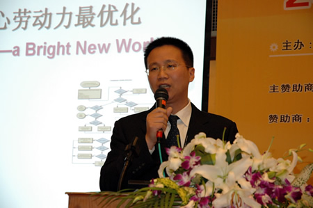 下面再介紹一下勞動力優(yōu)化。這兩年我們明顯感覺到呼叫中心發(fā)展非常快,我們經(jīng)常聽到這個呼叫中心在擴(kuò)人,那個呼叫中心在增加新的人,這個增加的速度使呼叫中心從十幾個人到幾百個甚至上千,那么我們怎么樣去管理這支龐大的隊伍,怎么提高團(tuán)隊的協(xié)作能力和工作的效率,這是我們面臨的問題。從外部來說,我們的市場競爭和用戶的服務(wù)在加強(qiáng),我們要用低成本提供更高的服務(wù),那么我們只有依靠我們的人,我們要提高我們?nèi)说募寄,提高組織能力,所以我們說員工是我們呼叫中心最重要的資產(chǎn)。從內(nèi)部來看,具體到我們的呼叫中心,我們主要有三個方面的壓力:第一個是在流程方面,其實我們很多呼叫中心不缺乏優(yōu)秀的流程也不缺乏優(yōu)秀的團(tuán)隊,但是目前的問題是大部分的流程是人工的,大家看到有績效管理的、有培訓(xùn)的、有質(zhì)監(jiān)的這些流程貫穿在整個的呼叫中心當(dāng)中,人工流程帶來的不僅僅是耗費時間和能力,還使得我們的員工在瑣碎的事情中奔波,不會去做更高層次的管理工作。同時因為是人工流程,資源上的共享和溝通是缺乏的,往往是不利的。第二個從信息上面來說,我們呼叫中心的數(shù)據(jù)會有一些人工流程,我們會安排一些人把數(shù)據(jù)填寫到報表中,這個報表也是我們做出決策的一個依據(jù)。這樣一種人工搜集資料的方式,造成很多人工流程的數(shù)據(jù)不完整,也就是我們的管理者不能夠拿到所有的資料。還有就是我們的效率降低了,就是管理層已經(jīng)看到問題的時候,可能是問題已經(jīng)暴露了,或者說是發(fā)生了更大的問題。