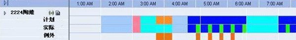 如圖,通過(guò)與PBX、CTI系統(tǒng)的接口,排班系統(tǒng)獲取座席的實(shí)時(shí)狀態(tài)信息,如登錄、接聽(tīng)、話(huà)后處理、登出等,并以不同的顏色進(jìn)行表示,與計(jì)劃的班次安排進(jìn)行比對(duì),從而監(jiān)控到座席的遵時(shí)例外(非遵時(shí))。通過(guò)這種方式,座席的實(shí)時(shí)狀態(tài)變化能夠及時(shí)的得到監(jiān)控,便于管理人員精確的監(jiān)控遵時(shí),同時(shí),也把班長(zhǎng)從遵時(shí)管理中部分解脫出來(lái)。