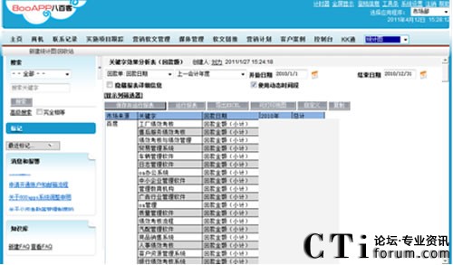 “廣撒網(wǎng)式的企業(yè)營(yíng)銷(xiāo)方式很難找到真正的目標(biāo)客戶,而利用搜索引擎則更貼近客戶的主觀需求,通過(guò)投放關(guān)鍵詞,讓目標(biāo)客戶主動(dòng)出現(xiàn)!崩铐翟谘葜v中指出,“企業(yè)通過(guò)百度后臺(tái)可以看到每個(gè)關(guān)鍵字花了多少錢(qián),被點(diǎn)擊了多少次,但卻無(wú)法統(tǒng)計(jì)關(guān)鍵字所帶來(lái)的收入。為了更好的達(dá)到關(guān)鍵詞廣告投入效果,八百客800APP—CRM系統(tǒng)與百度API接口對(duì)接,實(shí)現(xiàn)集成,這樣便可以輕松獲知客戶的關(guān)鍵字來(lái)源。通過(guò)800APP后臺(tái)系統(tǒng)所做的統(tǒng)計(jì)報(bào)表,可以清晰的看到通過(guò)哪個(gè)關(guān)鍵字獲得多少注冊(cè)客戶、多少成交客戶、多少匯款額,然后綜合對(duì)比每個(gè)關(guān)鍵詞的性價(jià)比,關(guān)掉不賺錢(qián)的關(guān)鍵字,將錢(qián)花在賺錢(qián)的關(guān)鍵字上。而且根據(jù)800APP系統(tǒng)所做的統(tǒng)計(jì)數(shù)據(jù),可以做出市場(chǎng)投入與產(chǎn)出的預(yù)期增長(zhǎng)曲線。通過(guò)800APP系統(tǒng)與百度集成,可以輕松達(dá)到市場(chǎng)投入不變,效果成倍增長(zhǎng)的目的。”