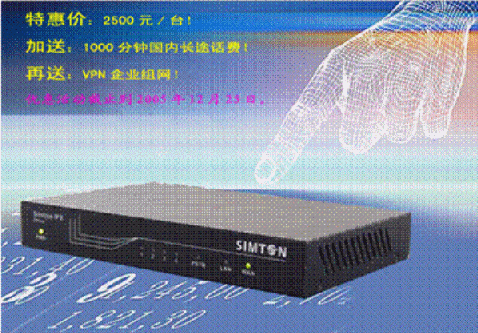 優(yōu)惠價(jià)格:僅為RMB 2,500元/臺(tái)!奉送1,000分鐘國(guó)內(nèi)長(zhǎng)途話費(fèi),再送VPN企業(yè)組網(wǎng)!