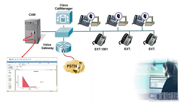 通過(guò)與Cisco 統(tǒng)一通信管理器(Cisco Communcation Manager)的無(wú)縫整合,CAM可以為企業(yè)提供相關(guān)語(yǔ)音通信的話(huà)務(wù)統(tǒng)計(jì)、呼叫計(jì)費(fèi)、流量分析等功能。通過(guò)簡(jiǎn)單的報(bào)表生成使用戶(hù)可以方便、及時(shí)的對(duì)整個(gè)企業(yè)的通訊情況進(jìn)行分析,從而有效的對(duì)通訊資源進(jìn)行管理、控制并防止通信資源浪費(fèi)。