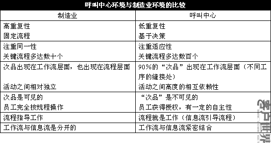 瀏覽一下這個表格之后,你還認為原本用于制造業(yè)的一種流程改進方法,也能夠適用于屬于變動環(huán)境的呼叫中心嗎?