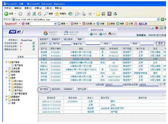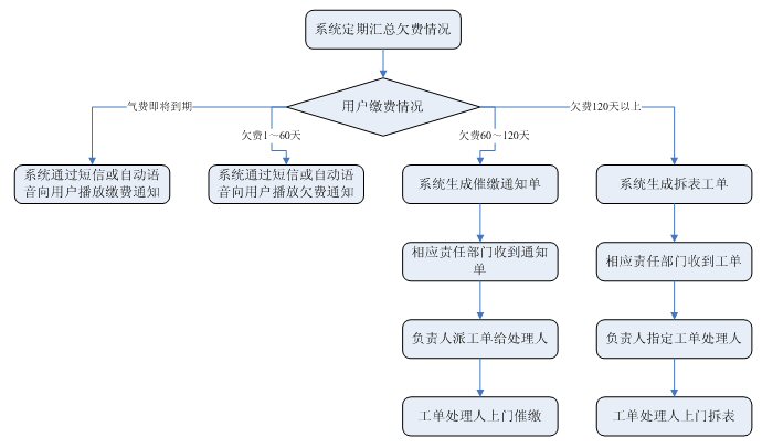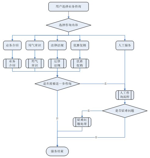 業(yè)務(wù)咨詢:用戶通過人工、自動(dòng)語音等方式咨詢有關(guān)政策法規(guī)、資費(fèi)標(biāo)準(zhǔn)、用氣常識(shí)、報(bào)裝方法等,系統(tǒng)以語音、傳真、Email、短消息等方式回復(fù)客戶。