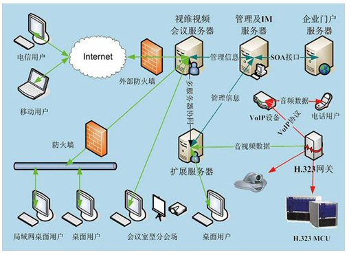 視維系統(tǒng)是一個基于IP網絡的綜合業(yè)務通訊平臺,通過多網絡接入方式實現網通、電信、聯通等用戶間高速互通;通過H.323模塊將企業(yè)內部原有的硬件設備與視維系統(tǒng)鏈接起來,有效的節(jié)約了投資;其他如SIP模塊,短信模塊,固網電話接入等都可以根據用戶需要進行擴展。視維系統(tǒng)可以支持分布式視頻服務器集群,可利用企業(yè)內部網絡或者互聯網構建超大規(guī)模企業(yè)綜合通訊平臺;凇懊嫦蚍⻊阵w系架構(SOA)”設計架構,實現很靈活地方便地與其業(yè)務系統(tǒng)如OA,HR,CRM,