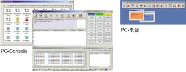 在PC電話內(nèi)標(biāo)準(zhǔn)集成一個(gè)獨(dú)立的連同電話系統(tǒng)的微軟Outlook數(shù)據(jù)庫。PC console讓接線員更加專業(yè)有效的管理話務(wù)。