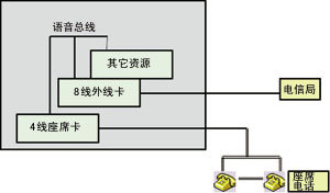 圖4 新結(jié)構(gòu)語音平臺卡構(gòu)筑8外線+3座席的CTI系統(tǒng)
