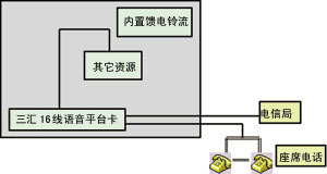 這一思路集合了一體化和模塊化各自的優(yōu)勢,克服了兩者的不足之處,使用三匯語音平臺卡構(gòu)成的CIT系統(tǒng)具有更大的靈活性。圖4所示為該語音平臺卡構(gòu)筑一個8外線+3座席的CTI系統(tǒng),用戶在通道數(shù)不大于16線情況下,可隨意增加外線或內(nèi)線通道而無需增加板卡。