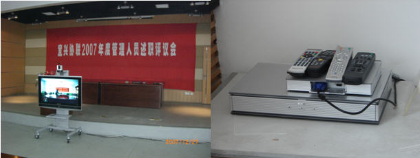 在宜興公司大樓二樓的貴賓室內(nèi),配置一套SONY PCS-1P視頻會議終端;并在此終端內(nèi)安裝了支持6點多點會議的H.323內(nèi)置多點MCU。