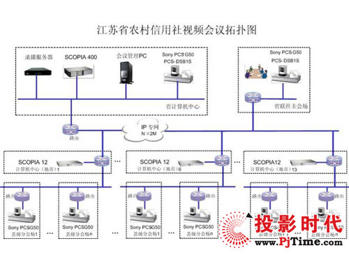 本次設(shè)計(jì)方案中,上海索高通過對(duì)江蘇農(nóng)信社的全省分布和各地實(shí)際需求,提供72套Sony PCS-G50視頻會(huì)議終端,IP網(wǎng)絡(luò)支持最大4Mbps的視頻傳輸速率,為用戶提供4CIF的高質(zhì)量視頻效果,配合H.264的強(qiáng)大功能一起獲得更高的媒體處理能力。通過Radvision