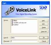- 簡易且方便的管理:在現(xiàn)有的TCP/IP網(wǎng)絡的條件下,管理員或主管可以在任何地方遠程登陸到Voicelink服務器上,來進行錄音回放和管理。