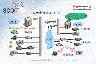 IP電話作為一種新技術(shù),確實(shí)令人振奮。它是對(duì)傳統(tǒng)電話交換技術(shù)的一次變革:不僅節(jié)省了企業(yè)長(zhǎng)途通信成本,這還為遠(yuǎn)程用戶提供對(duì)總部的數(shù)據(jù)網(wǎng)絡(luò)、通話系統(tǒng)和信息傳輸服務(wù)相同的接入能力,同時(shí)使運(yùn)行維護(hù)方面變的更加快捷、簡(jiǎn)便。3COM