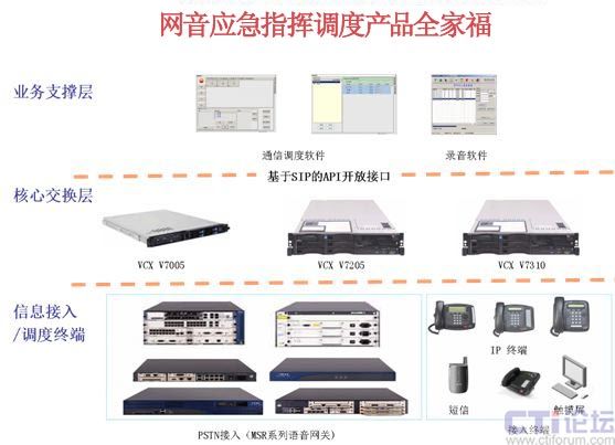 說(shuō)明:網(wǎng)音應(yīng)急指揮調(diào)度系統(tǒng)結(jié)構(gòu)上分為業(yè)務(wù)支撐層、呼叫控制層和信息接入/調(diào)度終端。
