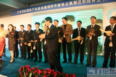 4月21日,江蘇信息服務(wù)產(chǎn)業(yè)基地暨揚州市服務(wù)業(yè)集聚區(qū)和服務(wù)業(yè)項目推介洽談會在江蘇信息服務(wù)產(chǎn)業(yè)基地(揚州)隆重召開,省信息產(chǎn)業(yè)廳副廳長龔懷進、揚州市委常委、常務(wù)副市長張京霞為省信息安全技術(shù)中心揭牌,中國網(wǎng)通集團公司總工程師滕勇,神州數(shù)碼高級副總裁陳勇,上海萬得信息股份董事長陸風等數(shù)十位集團公司老總現(xiàn)場祝賀,同時IBM、AVAYA、優(yōu)勝資訊、神州數(shù)碼等60多家企業(yè)現(xiàn)場簽定了投資合作協(xié)議,而華潤通信、中國電信、酒店無憂、漢世紀等10家企業(yè)則從廣陵區(qū)委書記孔令俊手中接過了入駐金鑰匙,成為首批入駐江蘇信息服務(wù)產(chǎn)業(yè)基地的企業(yè),至此江蘇信息服務(wù)產(chǎn)業(yè)基地迎來首發(fā)項目招商的“開門紅”,江蘇信息服務(wù)產(chǎn)業(yè)基地也因此被業(yè)界冠以中國首家專業(yè)定位信息呼叫和數(shù)據(jù)處理產(chǎn)業(yè)的“中國聲谷”的美譽。 “江蘇信息服務(wù)產(chǎn)業(yè)基地(揚州)”位于廣陵新城內(nèi),為省信息產(chǎn)業(yè)廳與揚州市政府聯(lián)手打造的中國首家專業(yè)定位于呼叫信息和數(shù)據(jù)處理產(chǎn)業(yè)的省級信息服務(wù)業(yè)基地,占地2.52平方公里,總投資50億元,處于揚州ECBD核心區(qū)域,交通便捷,區(qū)位優(yōu)勢獨特,生態(tài)環(huán)境優(yōu)美;匕凑铡爱a(chǎn)業(yè)社區(qū)”的標準和“商務(wù)公園”的理念規(guī)劃建設(shè),重點發(fā)展信息服務(wù)產(chǎn)業(yè)及具有揚州特色的城市信息化應用軟件和嵌入式軟件產(chǎn)業(yè),立足長三角、面向全國、服務(wù)世界,逐步發(fā)展成為全國乃至世界呼叫中心產(chǎn)業(yè)最佳實踐基地、全國生產(chǎn)性服務(wù)業(yè)的標桿示范基地及呼叫中心人才培訓與派遣基地。