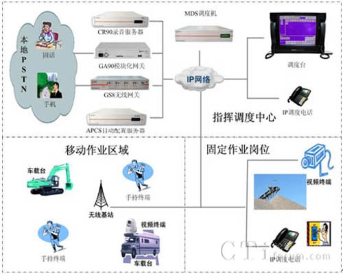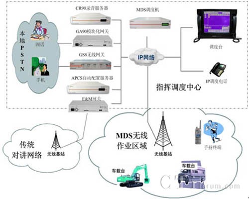 MDS系統(tǒng)可以應(yīng)用于各種作業(yè)現(xiàn)場(chǎng)的指揮調(diào)度, MDS系統(tǒng)不但支持系統(tǒng)基本的語(yǔ)音通信,調(diào)度中心可以通過(guò)視頻、數(shù)據(jù)、文本消息等綜合的多媒體方式與作業(yè)人員進(jìn)行通信交互,滿足各種復(fù)雜環(huán)境下的指揮調(diào)度需求。系統(tǒng)可以通過(guò)GS8無(wú)線網(wǎng)關(guān)、GA90 模塊化網(wǎng)關(guān)等設(shè)備實(shí)現(xiàn)與PSTN網(wǎng)絡(luò)的互聯(lián),滿足與手機(jī)和固話網(wǎng)絡(luò)用戶接入需要。豐富的終端類型可以滿足用戶對(duì)固定崗位、移動(dòng)人員及車輛設(shè)備等不同環(huán)境的使用需求,根據(jù)人員崗位工作性質(zhì)可以配置IP調(diào)度話機(jī)、手持終端和車載臺(tái)等終端。