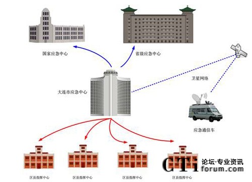 如上圖所示,系統(tǒng)由大連市應(yīng)急指揮中心、各區(qū)/縣部門通信終端、省政府應(yīng)急調(diào)度平臺和國務(wù)院應(yīng)急調(diào)度平臺等幾部分組成,大連市應(yīng)急指揮中心和各區(qū)/縣部門通信終端通過政府專網(wǎng)實(shí)現(xiàn)互通,市指揮中心和各區(qū)/縣通信終端均直接接入到政府專用IP網(wǎng)絡(luò)內(nèi)。市應(yīng)急指揮平臺與省政府應(yīng)急平臺IP電話調(diào)度系統(tǒng)通過全省辦公資源網(wǎng)實(shí)現(xiàn)溝通互聯(lián),與國務(wù)院應(yīng)急平臺IP電話調(diào)度系統(tǒng)通過國務(wù)院電子政務(wù)網(wǎng)絡(luò)實(shí)現(xiàn)互聯(lián)互通。