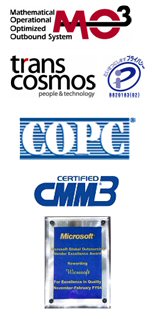 引進(jìn)國際領(lǐng)先的MO3(獲得2006 “Contact Center World Award” 最優(yōu)秀獎(jiǎng))呼出技術(shù):MO3是母公司transcosmos獨(dú)力研發(fā)的呼出服務(wù)體系。通過對數(shù)據(jù)的充分分析和挖掘,以“顧客行動(dòng)模式”為基礎(chǔ),預(yù)測“哪個(gè)顧客、哪個(gè)坐席、在哪個(gè)時(shí)間點(diǎn)、提供什么樣的服務(wù)、進(jìn)行怎樣的進(jìn)一步接觸”,以及精確計(jì)算是否收到最大投資和成效比(ROI),實(shí)行最有效的和顧客接觸的運(yùn)營。