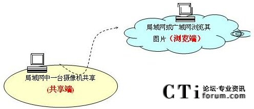 即局域網(wǎng)中任意一臺客戶端把攝像機設(shè)為共享,其他客戶端都可以查看這臺攝像機的內(nèi)容。