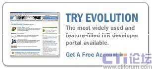 Evolution是一個免費的面向開發(fā)人員的互聯(lián)網(wǎng)社區(qū)門戶。通過基于WEB頁面的圖形化的IVR應(yīng)用設(shè)計和開發(fā)環(huán)境,提供類似工作流的開發(fā)方式,使得開發(fā)人員即使不了解VoiceXML和CCXML規(guī)范也能開發(fā)出高質(zhì)量的IVR應(yīng)用系統(tǒng)。Voxeo通過Evolution為開發(fā)人員提供免費的開發(fā)和測試環(huán)境,開發(fā)人員可以自由地在Evolution社區(qū)中開發(fā)、部署和測試各種復(fù)雜的應(yīng)用。Voxeo為開發(fā)人員提供免費的全天候的技術(shù)支持。目前有超過33,000的開發(fā)人員在Voxeo的開發(fā)社區(qū)中注冊并開發(fā)和測試他們各自的應(yīng)用。
