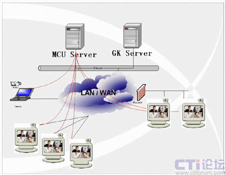當(dāng)召開(kāi)多點(diǎn)的交互式會(huì)議時(shí)則需要MCU(多點(diǎn)控制器)的參與。MCU的作用類(lèi)似于交換機(jī),主要完成各會(huì)場(chǎng)圖像的切換和語(yǔ)音的混音功能,一般放置在主會(huì)場(chǎng)。在MCU的控制下可以實(shí)現(xiàn)語(yǔ)音激勵(lì)、導(dǎo)演控制等多種會(huì)議控制方式。