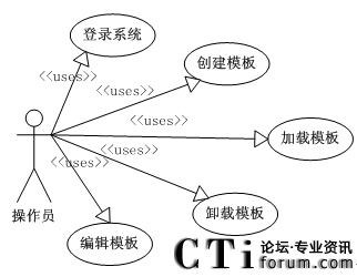 報表設(shè)計工具,主要功能是用來在可視化界面中察看和修改記錄統(tǒng)計,負責處理報表的設(shè)計工作。它應(yīng)該具有全面的報表設(shè)計功能和友好的用戶界面,能夠被普遍的數(shù)據(jù)處理和編輯時所采用。該報表設(shè)計工具的操作員利用該工具可以進行系統(tǒng)登錄,創(chuàng)建模板,編輯模板,加載模板,卸載模板等,用例圖[30]