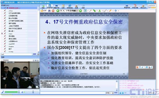 CTI論壇(ctiforum)05月07日消息: 4月8日-9日國家稅務(wù)總局組織全國省國稅地稅局IT主任與解放軍總參三院、中國信息安全評測中心、神州網(wǎng)御70多人在濟(jì)南錦繡山莊以及全國各地國稅地稅相關(guān)人員200多人使用自己辦公室的電腦通過盛維(Cenwave)新世紀(jì)提供的網(wǎng)絡(luò)視頻直播系統(tǒng)召開“國家稅務(wù)系統(tǒng)信息安全風(fēng)險(xiǎn)評估啟動(dòng)會(huì)”。此次會(huì)議是國家稅務(wù)總局首次租用網(wǎng)絡(luò)視頻會(huì)議直播系統(tǒng)召開全國性會(huì)議也是參會(huì)人數(shù)最多的一次,不僅打破地點(diǎn)人數(shù)的限制、克服了硬件設(shè)備的局限、節(jié)省行政成本,也是建設(shè)“兩型社會(huì)”的具體體現(xiàn)。